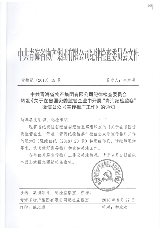 轉(zhuǎn)發(fā)《關(guān)于在省國資委監(jiān)管企業(yè)中開展“青海紀(jì)檢監(jiān)察”微信公眾號宣傳推廣工作》的通知