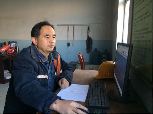 圖為:白成業(yè)(左一)在對作業(yè)長進行現(xiàn)場培訓