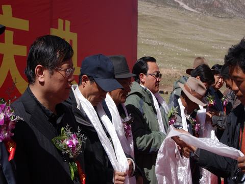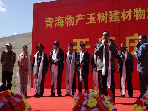 省玉樹地震災(zāi)后重建現(xiàn)場(chǎng)指揮部指揮長(zhǎng)、副省長(zhǎng)馬順清宣布建材物流集散中心正式開工并講話。省政府副秘書長(zhǎng)巨偉、省經(jīng)委、省城鄉(xiāng)住房建設(shè)廳、西寧市政府、玉樹州政府相關(guān)部門、玉樹縣有關(guān)負(fù)責(zé)同志,省物產(chǎn)集團(tuán)總經(jīng)理王玉輝、黨委書記白家林、副總經(jīng)理物產(chǎn)化工公司董事長(zhǎng)耿保平等參加了開工儀式。