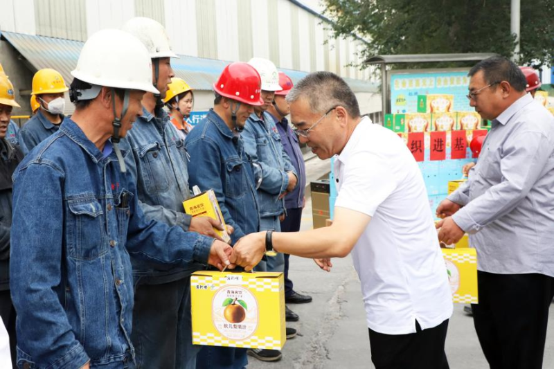 夏日送清涼,點(diǎn)滴沁人心。8月14日,青海省總工會(huì)紀(jì)檢監(jiān)察組組長(zhǎng)祁維正,省總工會(huì)二級(jí)巡視員張文輝等一行3人蒞臨青海物產(chǎn)工業(yè)投資有限公司開展“夏送清涼”慰問活動(dòng),為夏日高溫下的一線職工送去組織關(guān)懷。集團(tuán)副總經(jīng)理、工會(huì)主席張?jiān)手业认嚓P(guān)人員陪同。